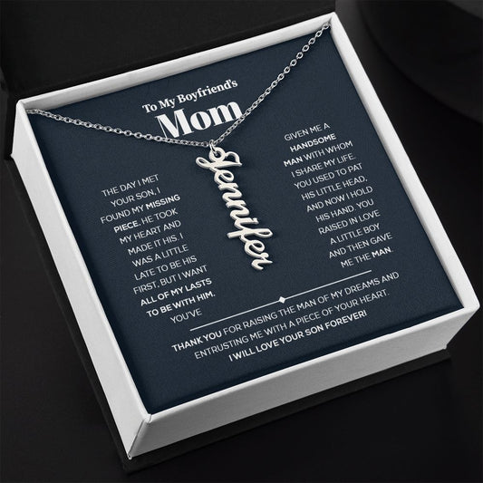 To My Boyfriend's Mom - I Will Love Your Son Forever - Personalized Vertical Name Necklace