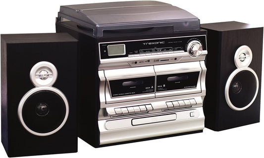 Trexonic 3-Speed Vinyl Turntable Home Stereo System with CD Player, Double Cassette Player, Bluetooth, FM Radio & USB/SD Recording