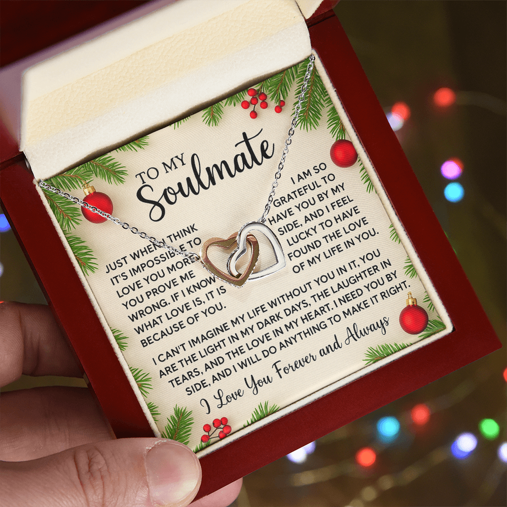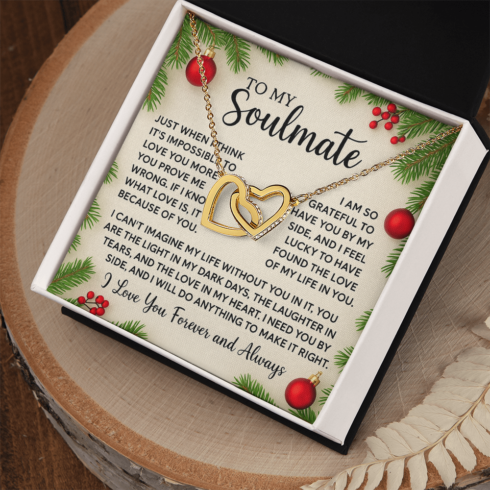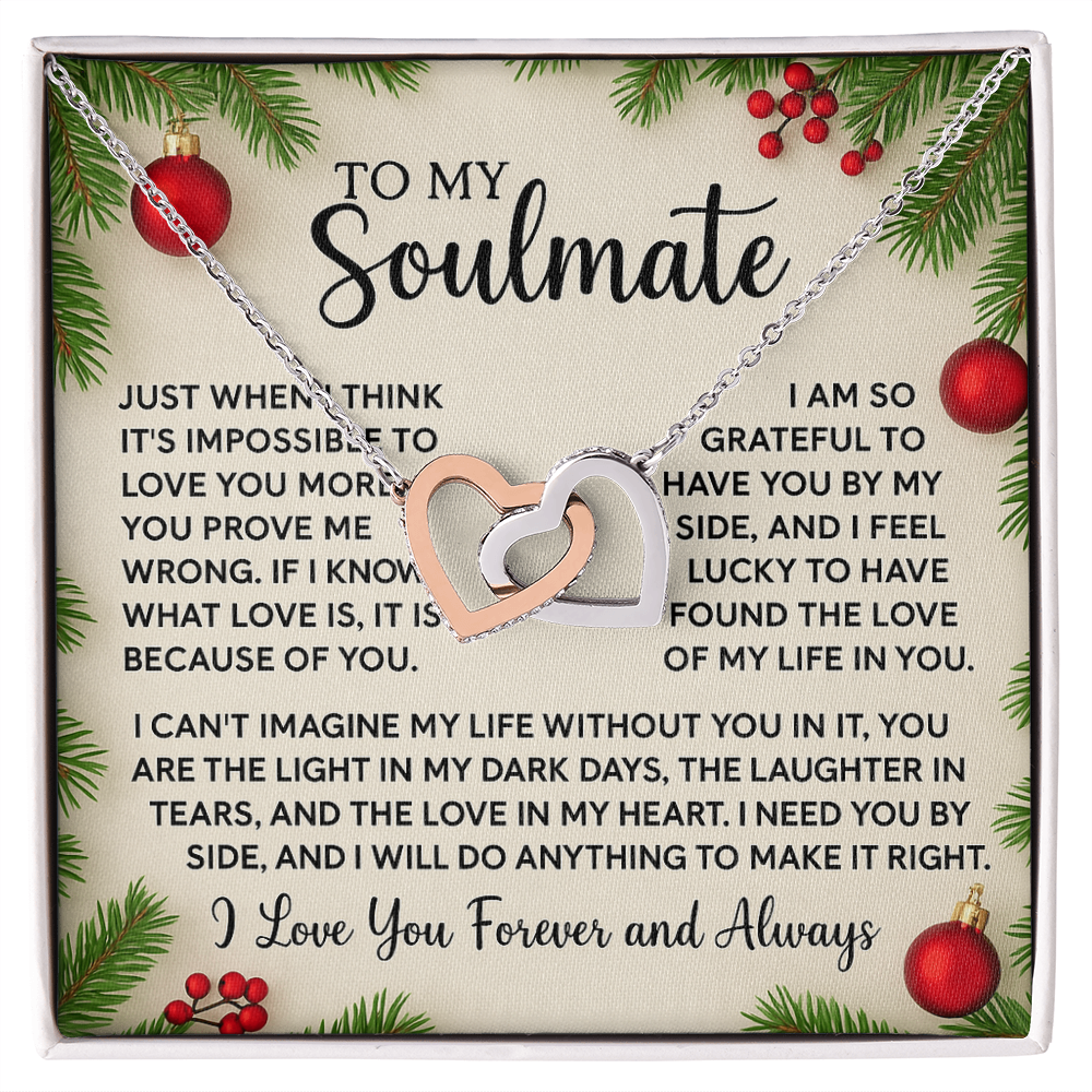 Christmas Gift for Her – Interlocking Hearts Necklace (Rose Gold/18K Gold)